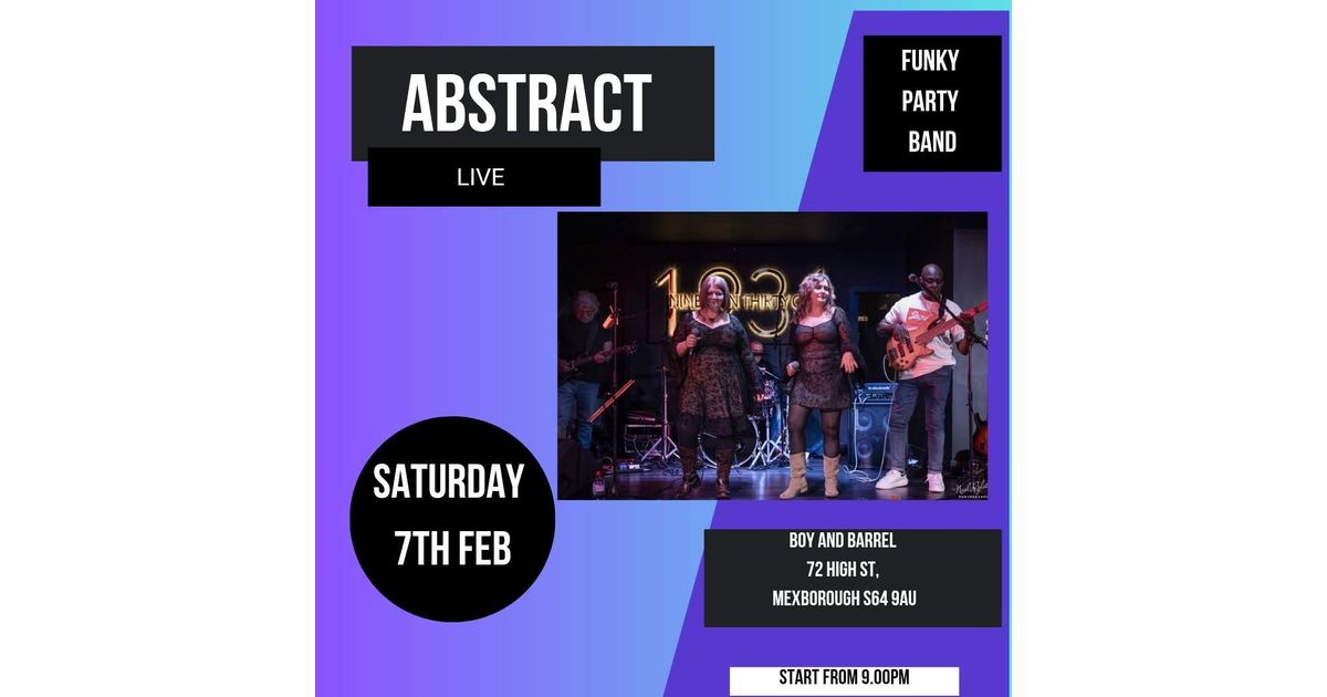 Join Abstract, the funky party band, for a live performance at Boy and Barrel in Mexborough. Enjoy an evening of vibrant music and entertainment starting at 9:00 PM at this popular venue.