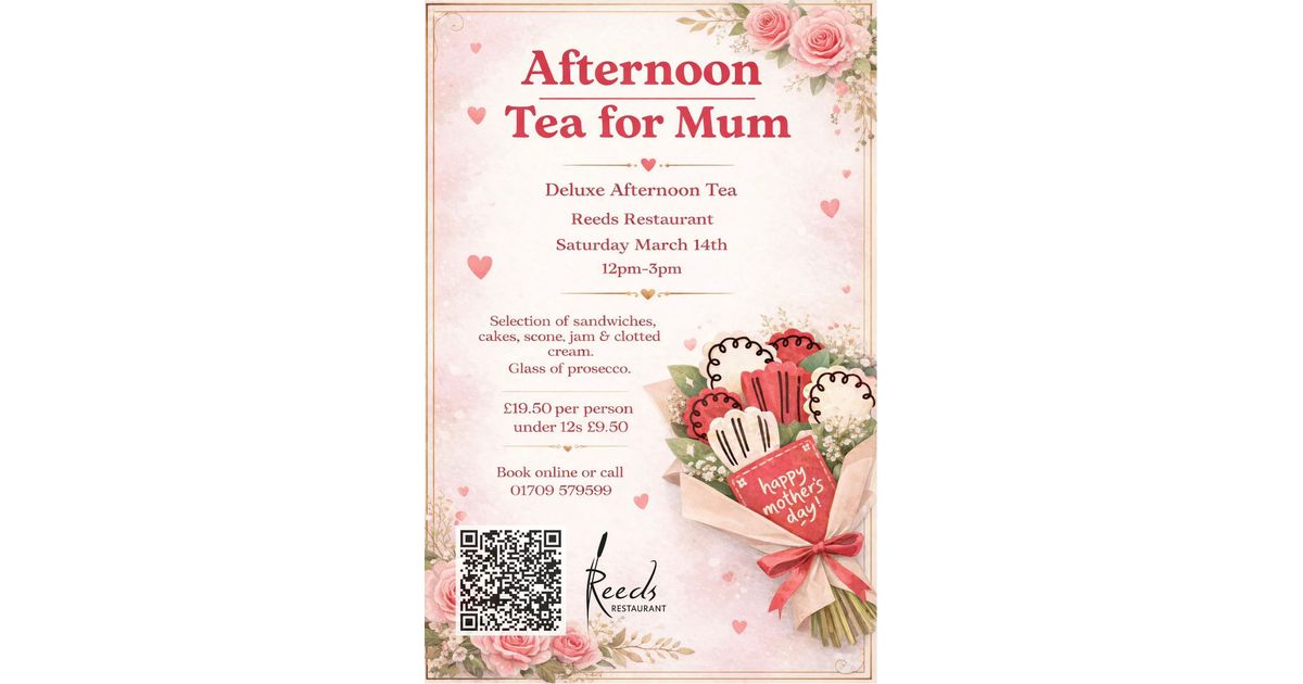 Celebrate Mother's Day with a deluxe afternoon tea at Reeds Restaurant. Enjoy a delightful selection of sandwiches, cakes, scones with jam and clotted cream, along with a glass of prosecco.