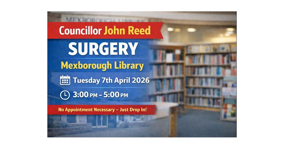 Join Councillor John Reed at Mexborough Library for a drop-in surgery on April 7th, 2026. No appointment is necessary. This is a great opportunity to discuss community matters directly with your local representative.
