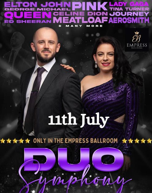 This event features Duo Symphony performing music by iconic artists such as Elton John, Pink, Lady Gaga, Queen, and many more. It's held exclusively at the Empress Ballroom on the 11th of July.