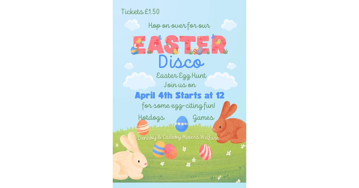 Join the fun at the annual Easter Disco featuring an exciting Easter Egg Hunt. The event will include hotdogs, games, and various activities for an egg-citing experience. Located at Denaby & Cadeby Miners Welfare, this community event is perfect for families and friends wanting to celebrate Easter together.