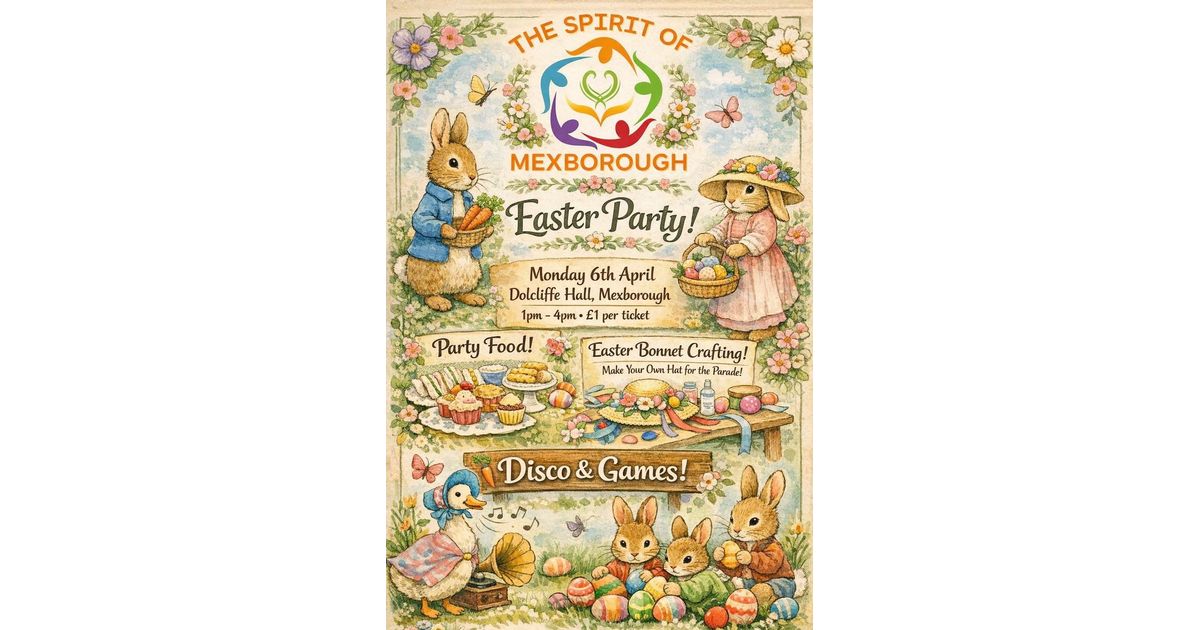 Join the Spirit of Mexborough for a delightful Easter Party at Dolcliffe Hall in Mexborough. Enjoy an afternoon of party food, exciting Easter bonnet crafting, and lively disco and games, all for just £1 per ticket.