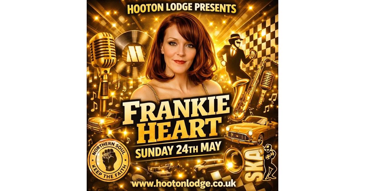 Join Frankie Heart for an exciting performance at Hooton Lodge on Sunday, 24th May. Enjoy a night filled with the vibrant sounds of Northern Soul and Ska music. Don't miss this lively event presented by Hooton Lodge.