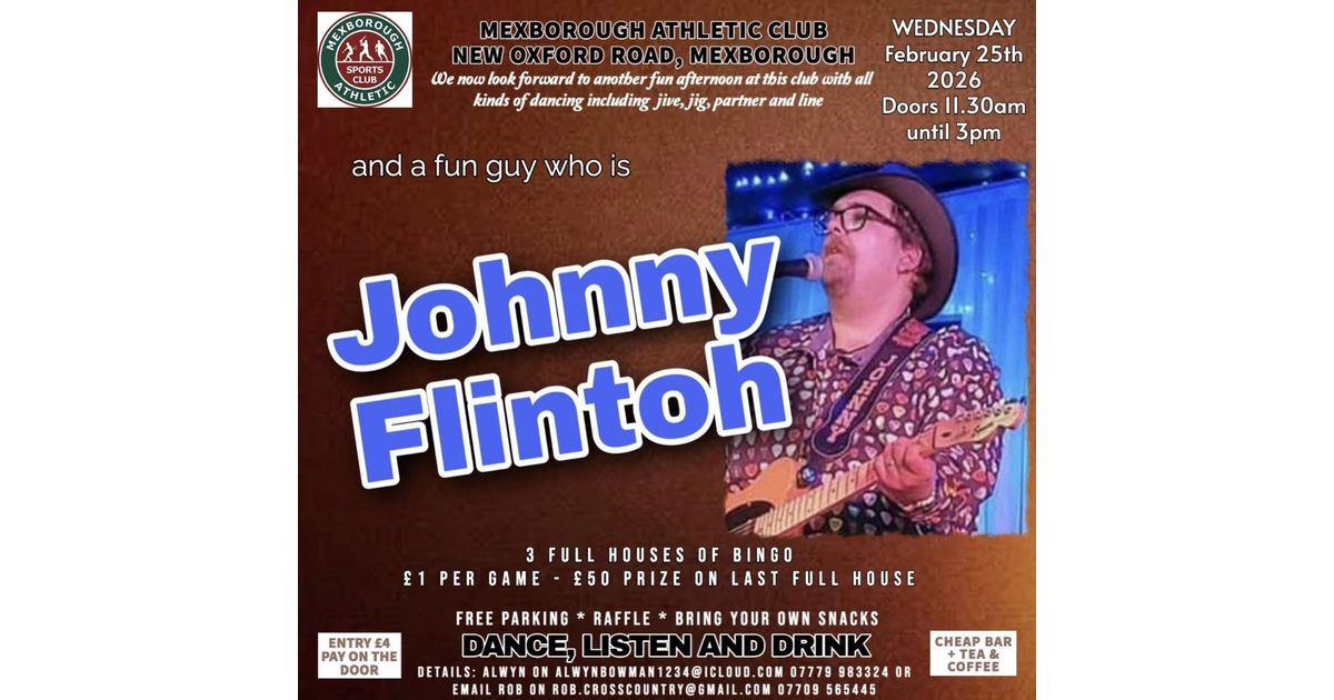 Join the lively event at Mexborough Athletic Club featuring a fun performance by Johnny Flinto. Enjoy a variety of dances including jive, jig, partner, and line. The afternoon includes three full houses of bingo with a chance to win a £50 prize on the last full house. Attendees can dance, listen, and drink with free parking available. Bring your own snacks and enjoy a raffle. Entry fee is £4, with bingo games at £1 each.