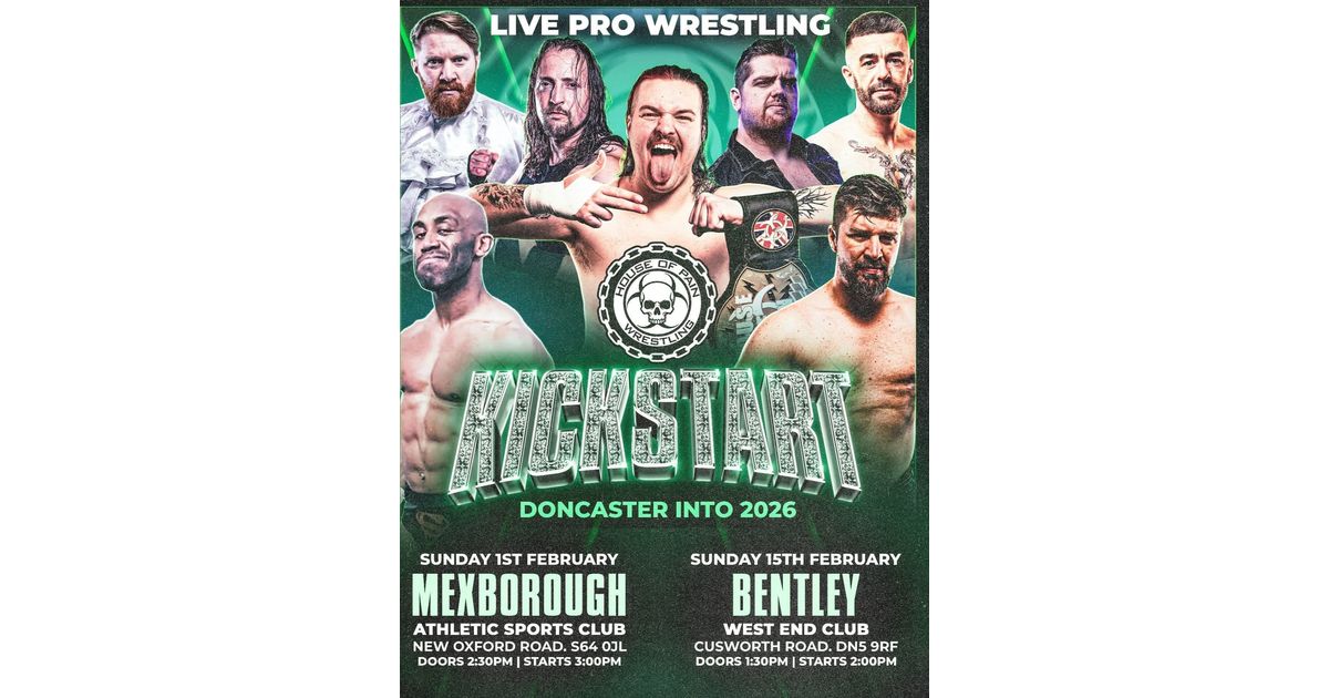 Kickstart the new year with an exciting live pro wrestling event presented by House of Wrestling. Join us at the Mexborough Athletic Sports Club for an action-packed experience. Doors open at 2:30 PM and the event starts at 3:00 PM. Don't miss out on this thrilling spectacle!