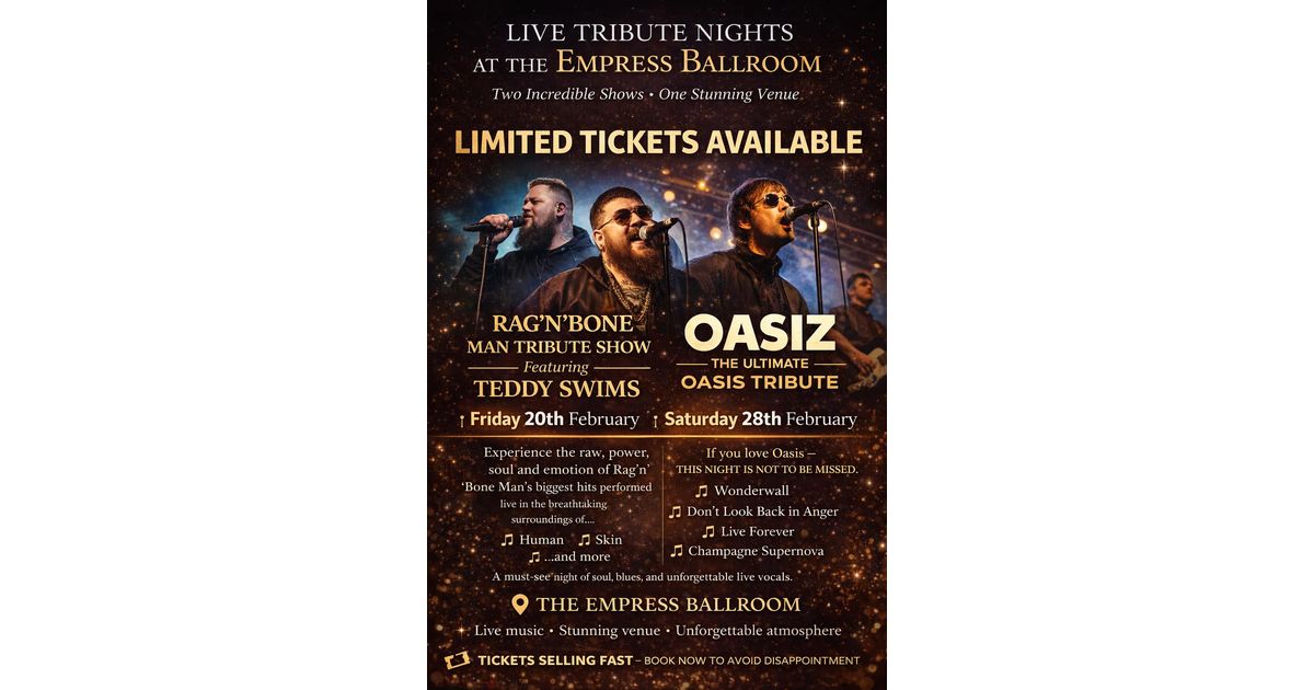 Experience the raw power, soul, and emotion of Rag'n'Bone Man's biggest hits performed live by Teddy Swims on February 20th. On February 28th, enjoy the ultimate Oasis tribute with popular hits like 'Wonderwall' and 'Don't Look Back in Anger'. A must-see night of unforgettable live vocals in a stunning venue.