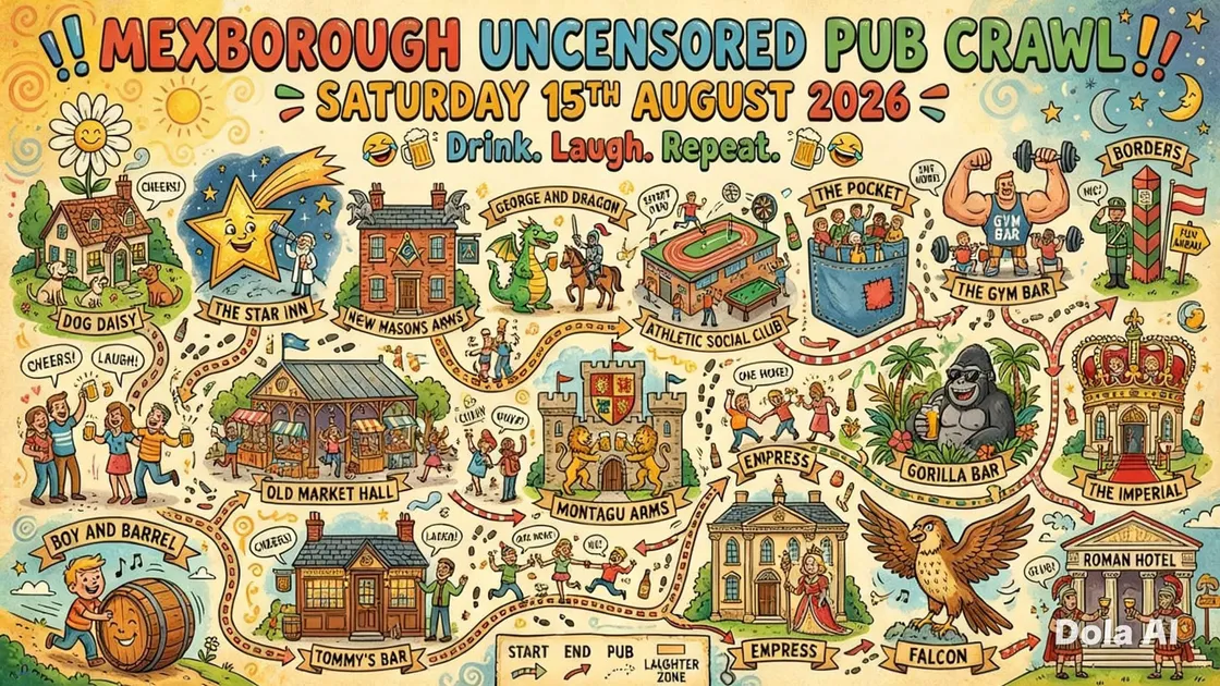 Join the Mexborough Uncensored Pub Crawl on Saturday, 15th August 2026. This event invites participants to explore a variety of pubs, including The Star Inn, New Masons Arms, and Gorilla Bar. Enjoy an exciting day filled with drinks and laughter as you navigate through notable venues like George and Dragon and The Imperial. Embrace the community spirit and have fun with friends as you embark on this lively pub adventure across Mexborough.