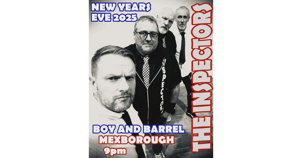 Celebrate New Year's Eve 2025 with The Inspectors at the Boy and Barrel in Mexborough. Enjoy an exciting evening of live music as you ring in the new year with friends and family.