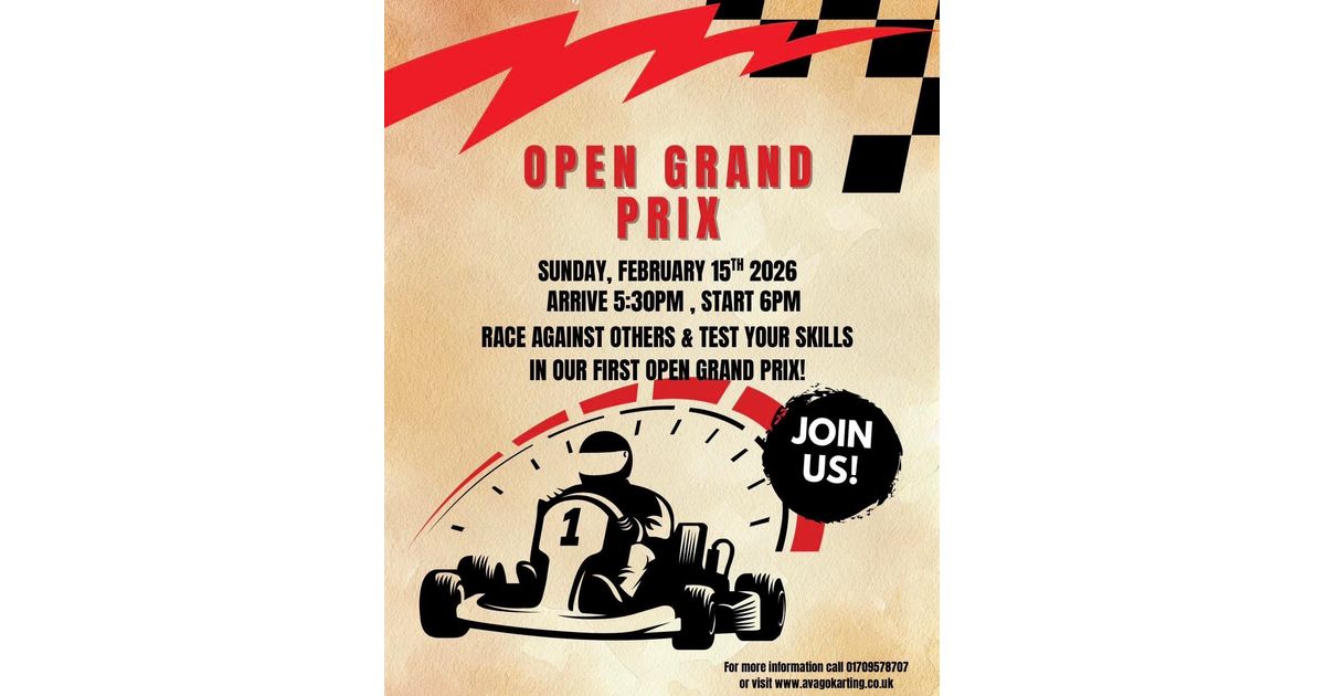Join the excitement at the Open Grand Prix on Sunday, February 15th, 2026. Race against others and test your skills in a thrilling karting competition. Be sure to arrive by 5:30 PM. For more details, contact or visit their website.