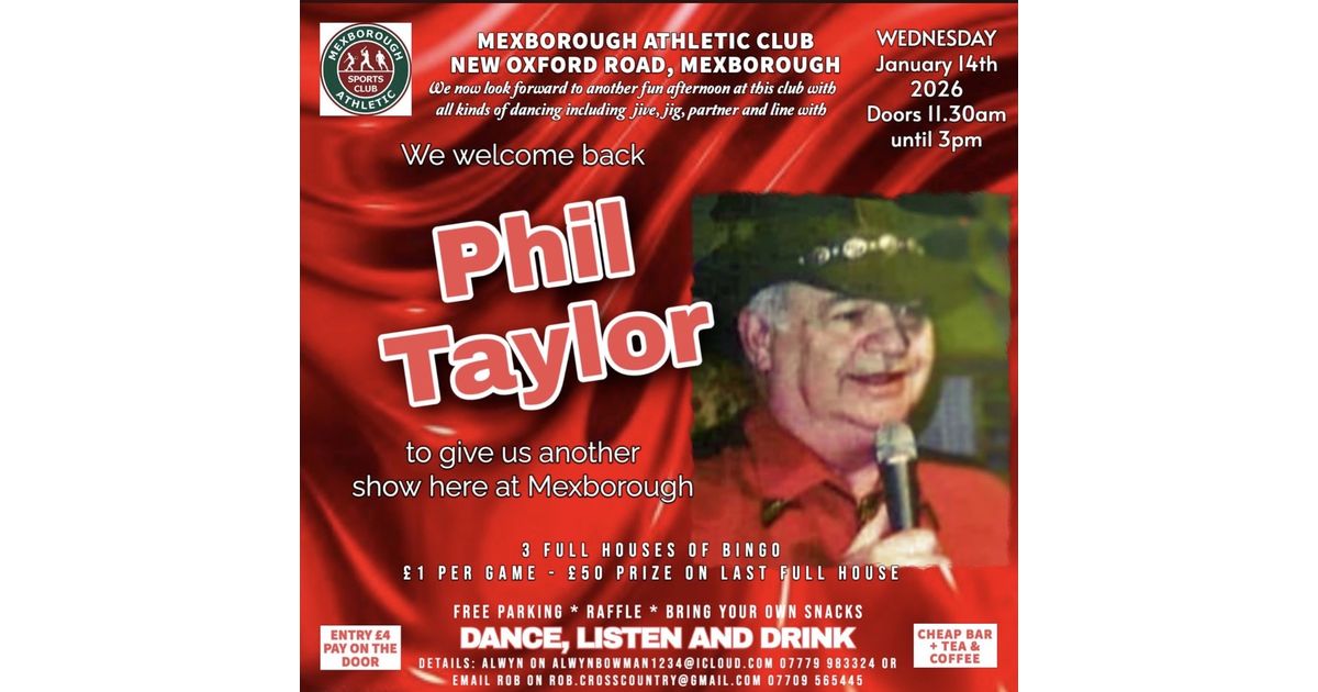 Join Mexborough Athletic Club for a lively afternoon show featuring Phil Taylor with a variety of dancing including jive, jig, partner, and line dancing. Enjoy three full houses of bingo with exciting prizes including a £50 prize on the last full house. The event offers free parking, a raffle, and the option to bring your own snacks. Dance, listen, and drink with affordable entry prices and a cheap bar offering tea and coffee.