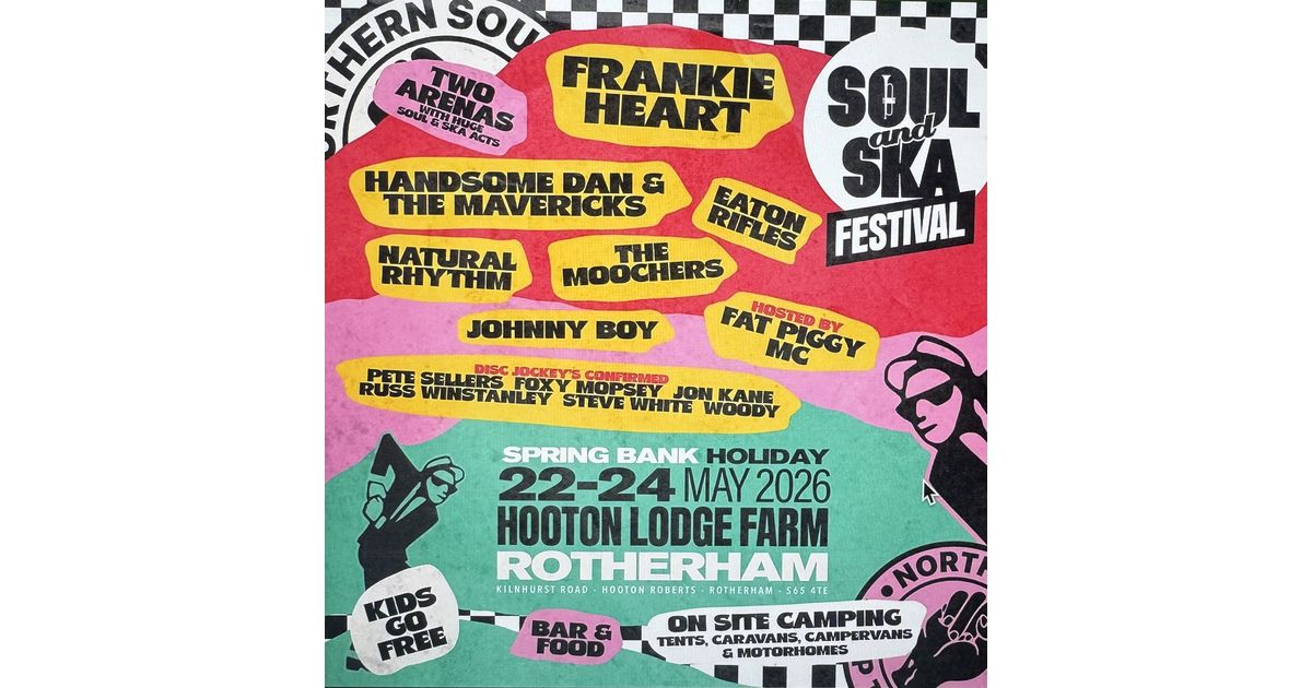 Join us for the Soul and Ska Festival at Hooton Lodge Farm in Rotherham from May 22 to 24, 2026. Experience amazing performances from artists like Frankie Heart, Handsome Dan & The Mavericks, and Eaton Rifles, along with many others on two arenas. Enjoy a fun-filled weekend with DJ sets, free entry for kids, and on-site camping options. Don't miss this vibrant celebration of music and community.