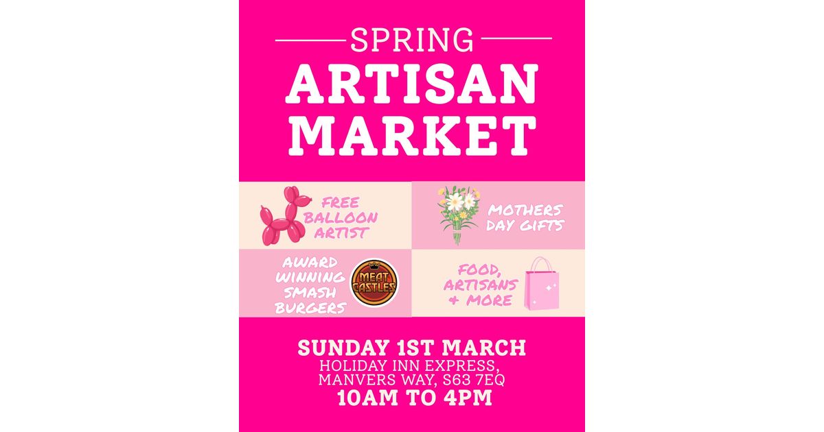 Join the Spring Artisan Market at Holiday Inn Express, featuring free balloon artistry, Mother's Day gifts, award-winning smash burgers, and a delightful array of food and artisan products. A perfect day out with family and friends.