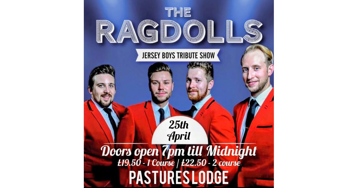Experience The Ragdolls, a fantastic Jersey Boys tribute show, performing live at Pastures Lodge. Doors open at 7 PM for an unforgettable evening filled with music and entertainment. Enjoy a meal with prices starting at £19.50 for one course or upgrade to two courses.