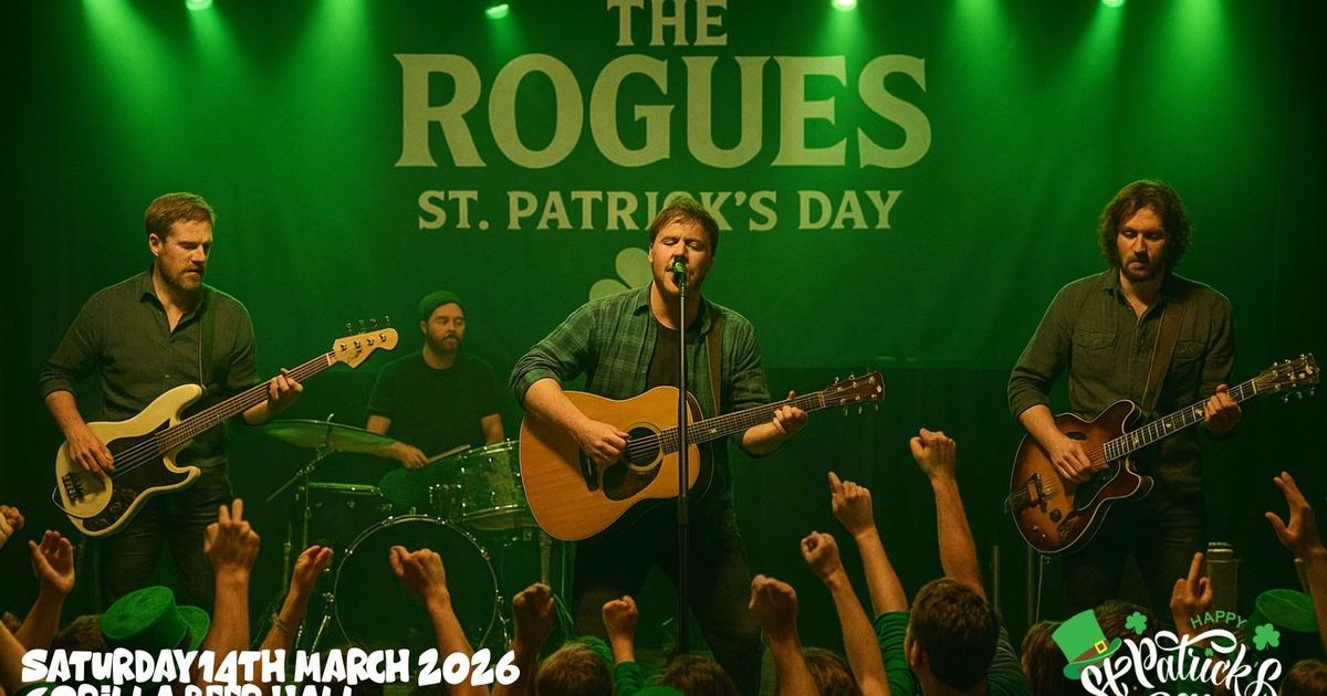 Celebrate St. Patrick's Day with The Rogues at the Gorilla Beer Hall. Enjoy a lively atmosphere and great music. Free tickets available at fatsoma.com.